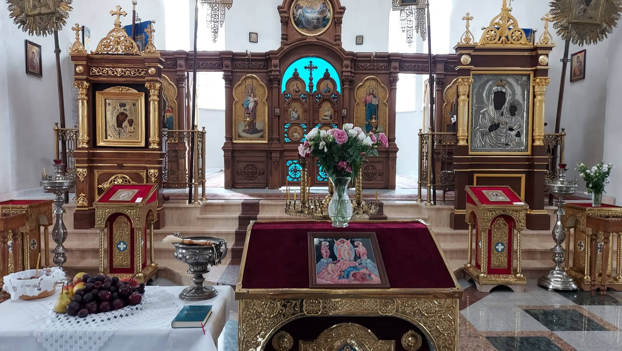 Troparion, ton 7: Przemieniłeś się na górze, Chryste Boże, objawiając uczniom Twoim chwałę Twoją na ile mogli pojąć. Niechaj więc i nam grzesznym zajaśnieje wieczna Światłość Twoja, modlitwami Bogurodzicy, Dawco Światłości, chwała Tobie!