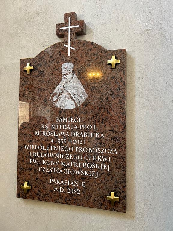 Pod koniec nabożeństwa Biskup Atanazy poświęcił ikonę oraz tablicę upamiętniającą osobę o. Mirosława Drabiuka po czym została odsłużona litija zaupokojna.