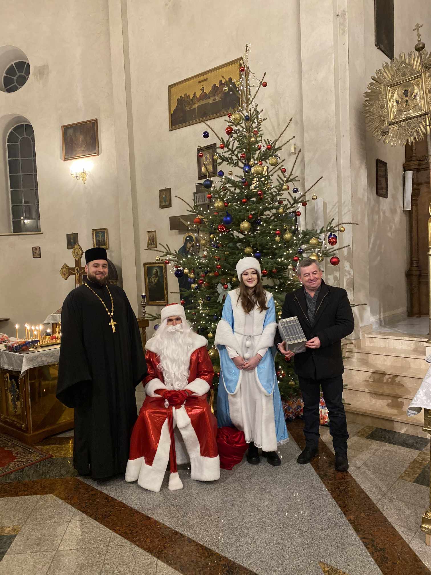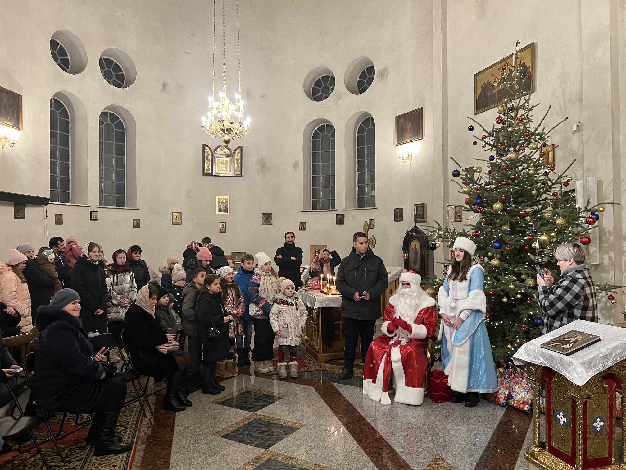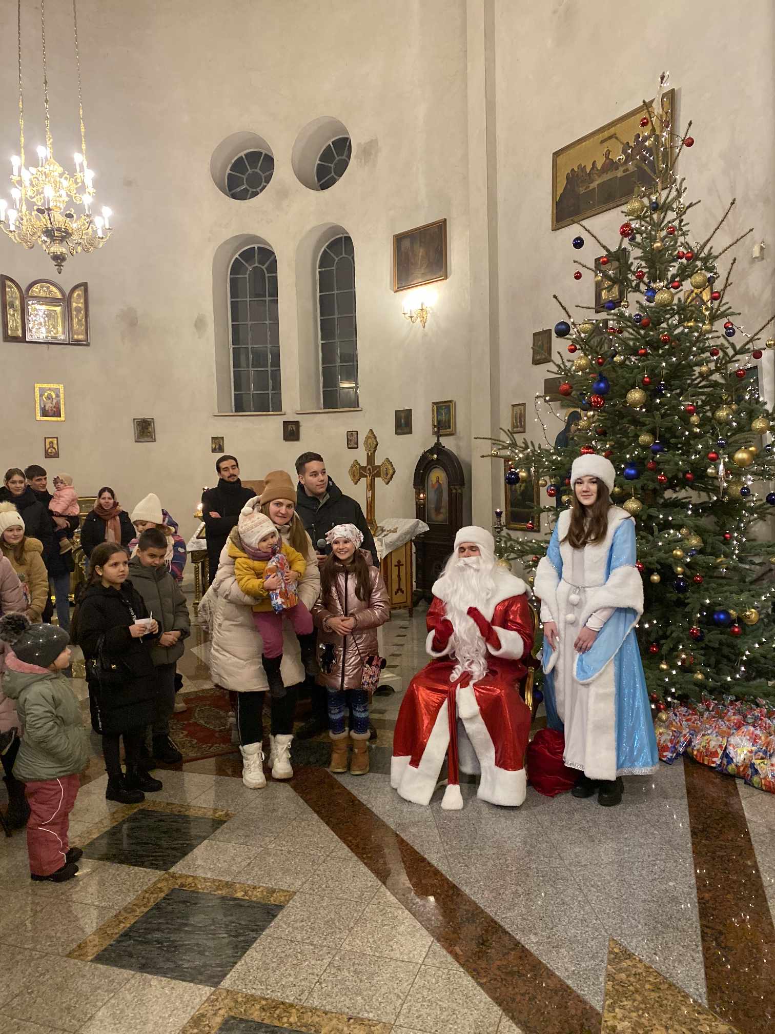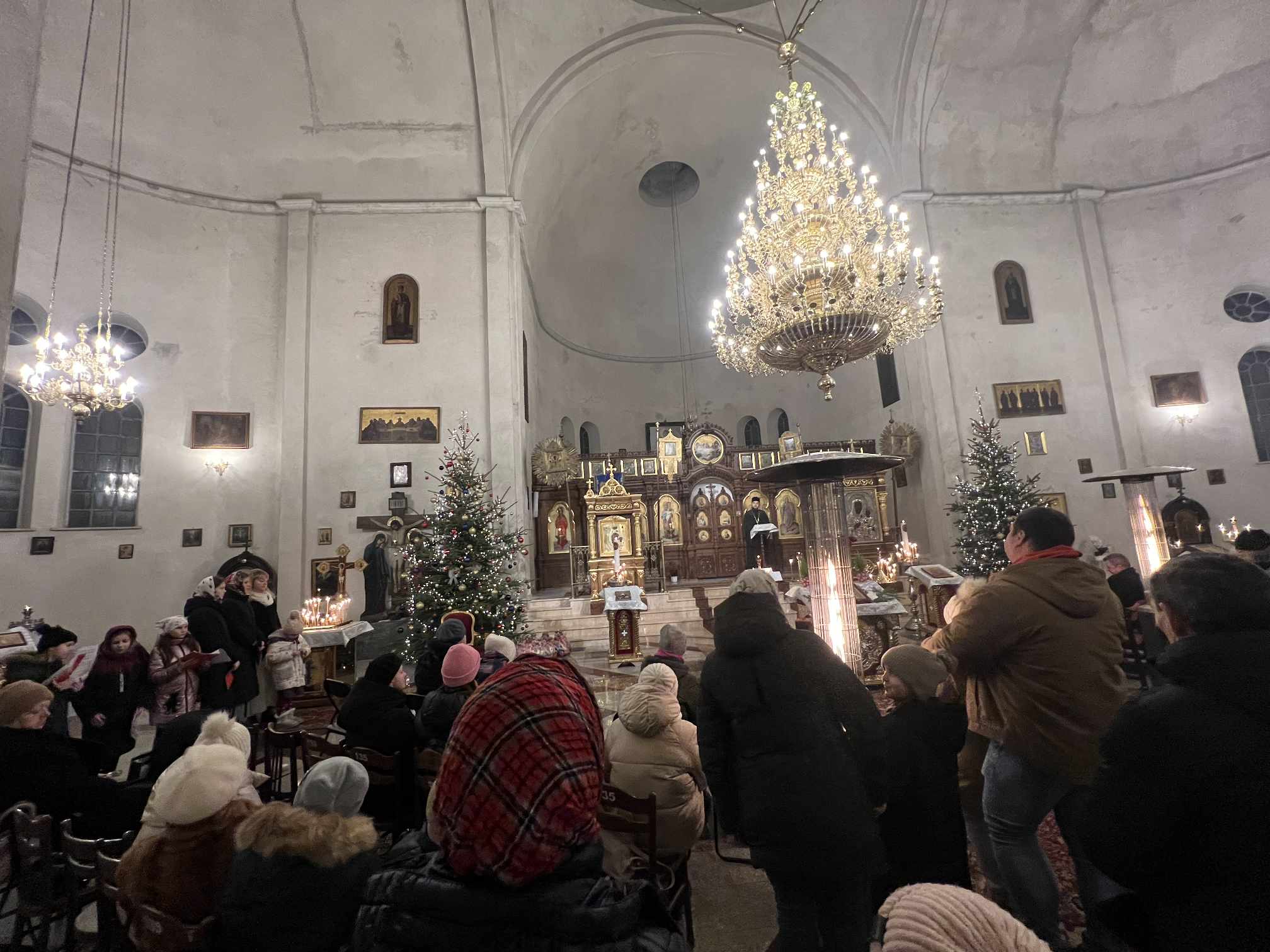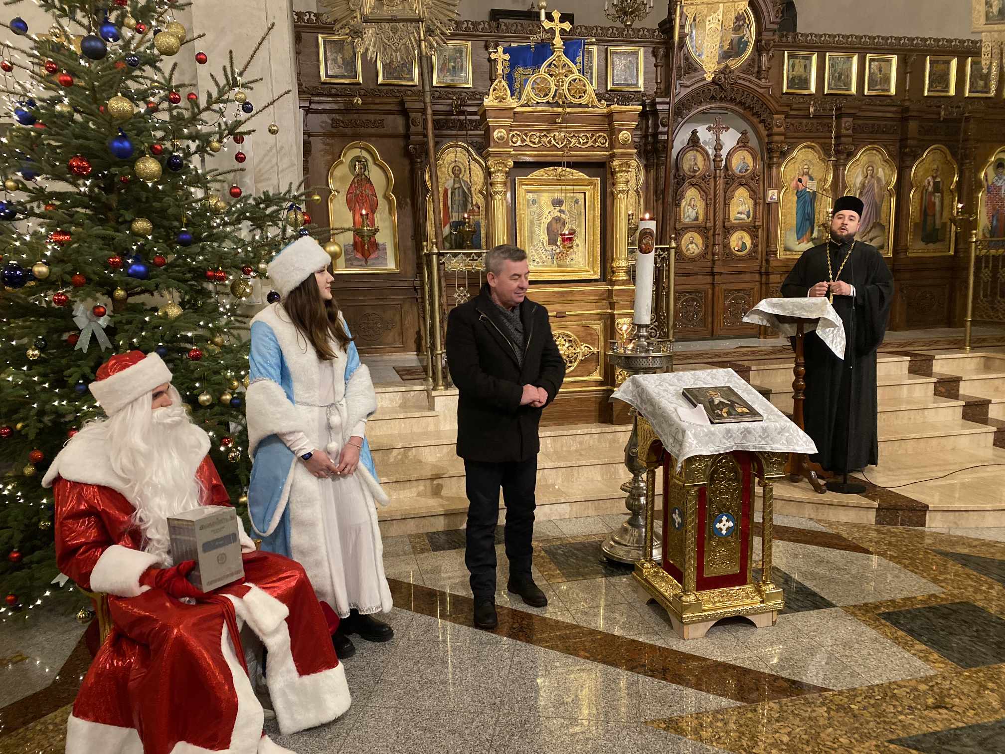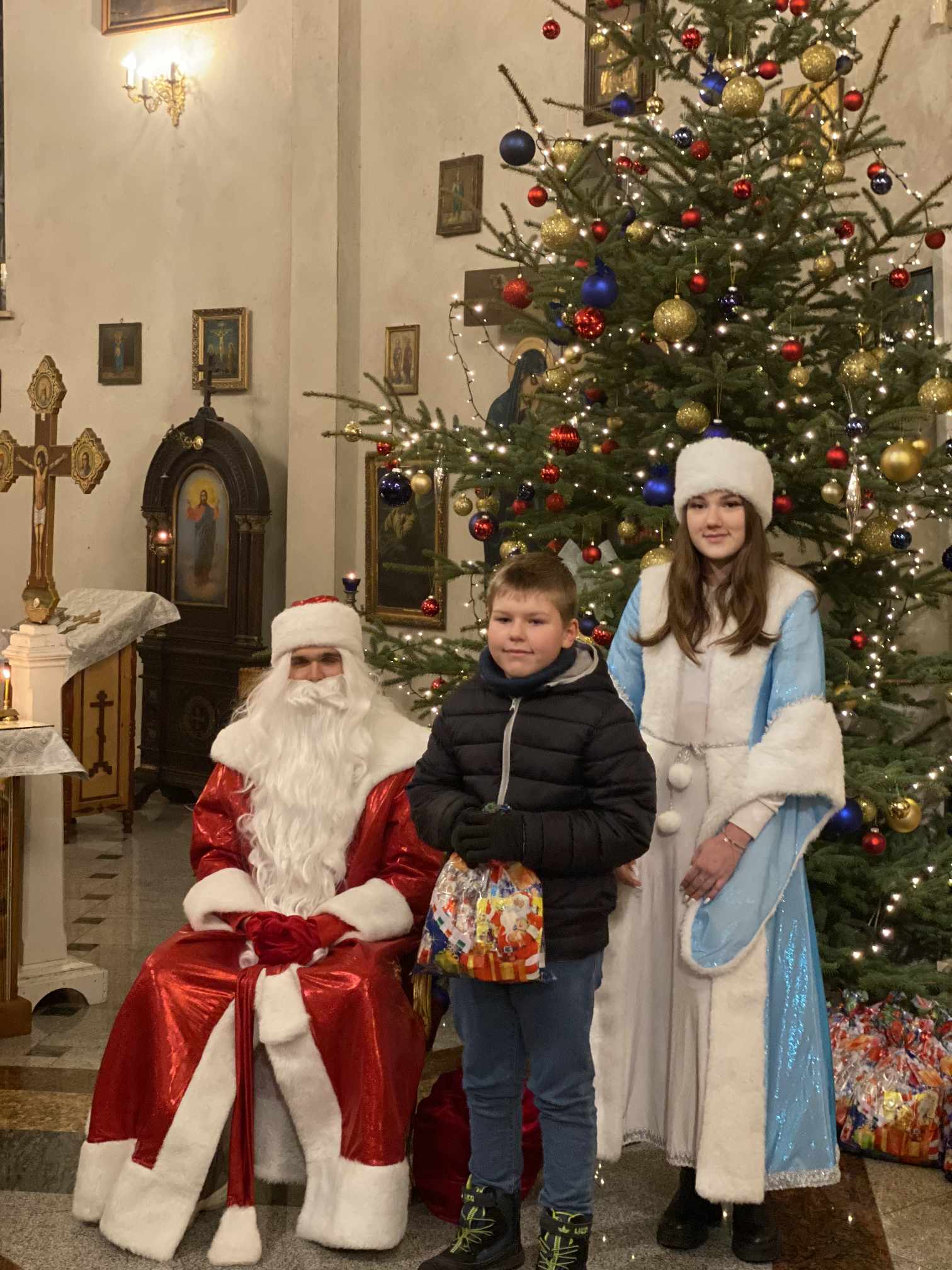 O godzinie 17.00 rodzice wraz z dziećmi zebrali się w świątyni, aby wysłuchać pięknych kolęd i wierszyków w wykonaniu chóru dziecięcego. Po przepięknym wystąpieniu najmłodszych parafian o. Marcin Bielawski, proboszcz parafii, wręczył kwiaty dyrygentce chóru p. Swietłanie i podziękował za profesjonalną opiekę nad kształceniem muzycznym dzieci, gdzie nieustannie rozwijana jest idea wychwalania Boga poprzez śpiew cerkiewny.