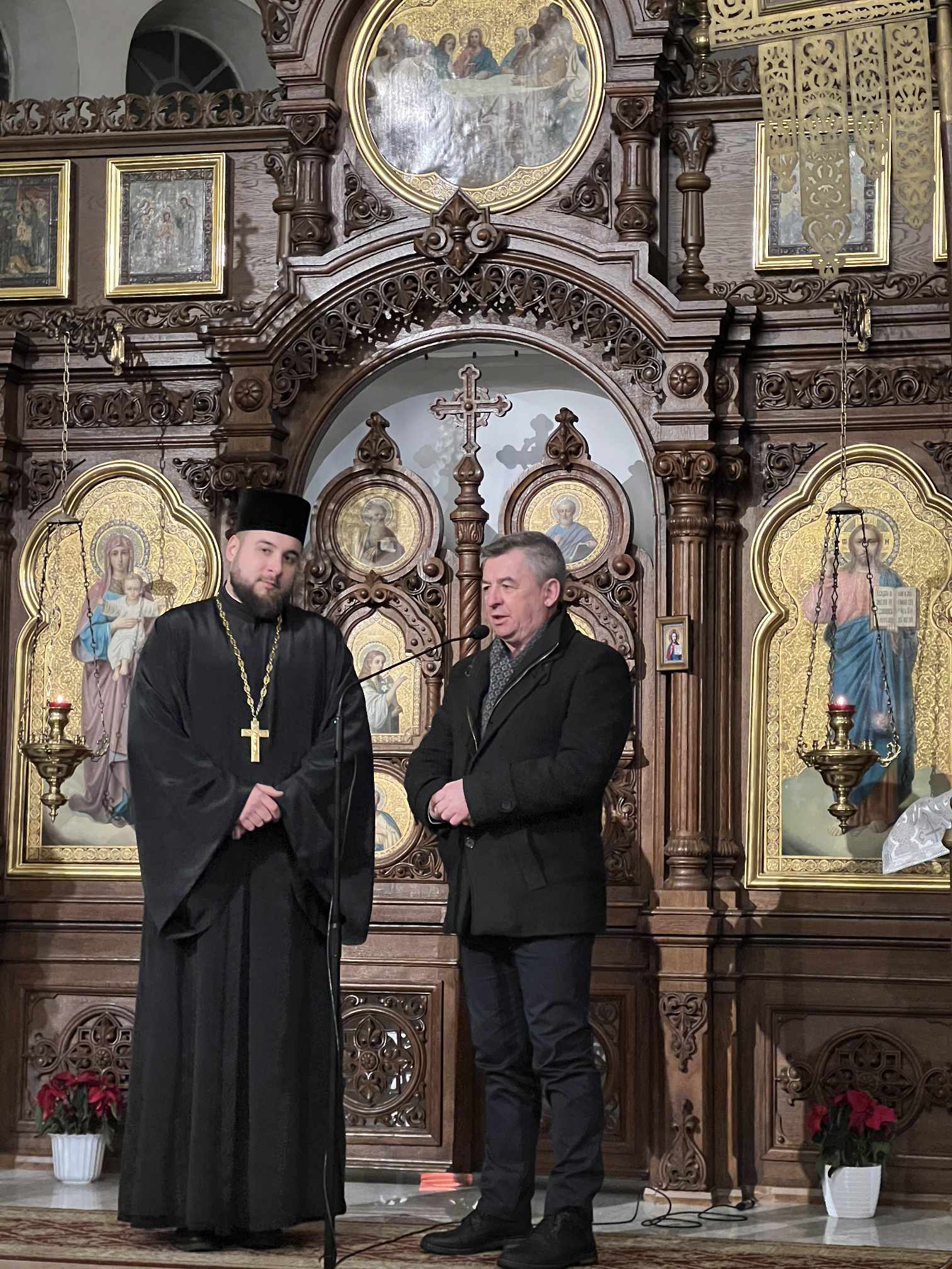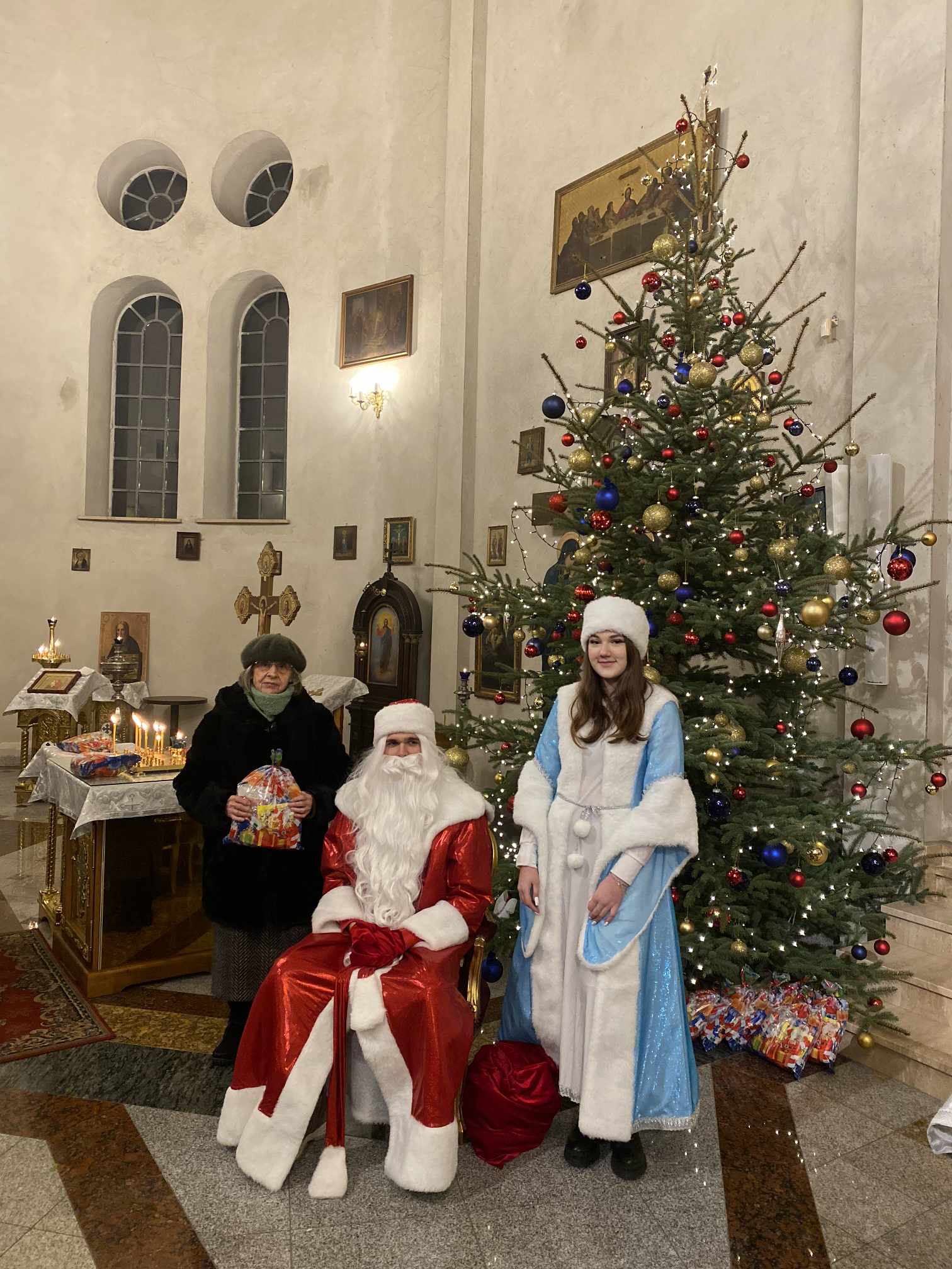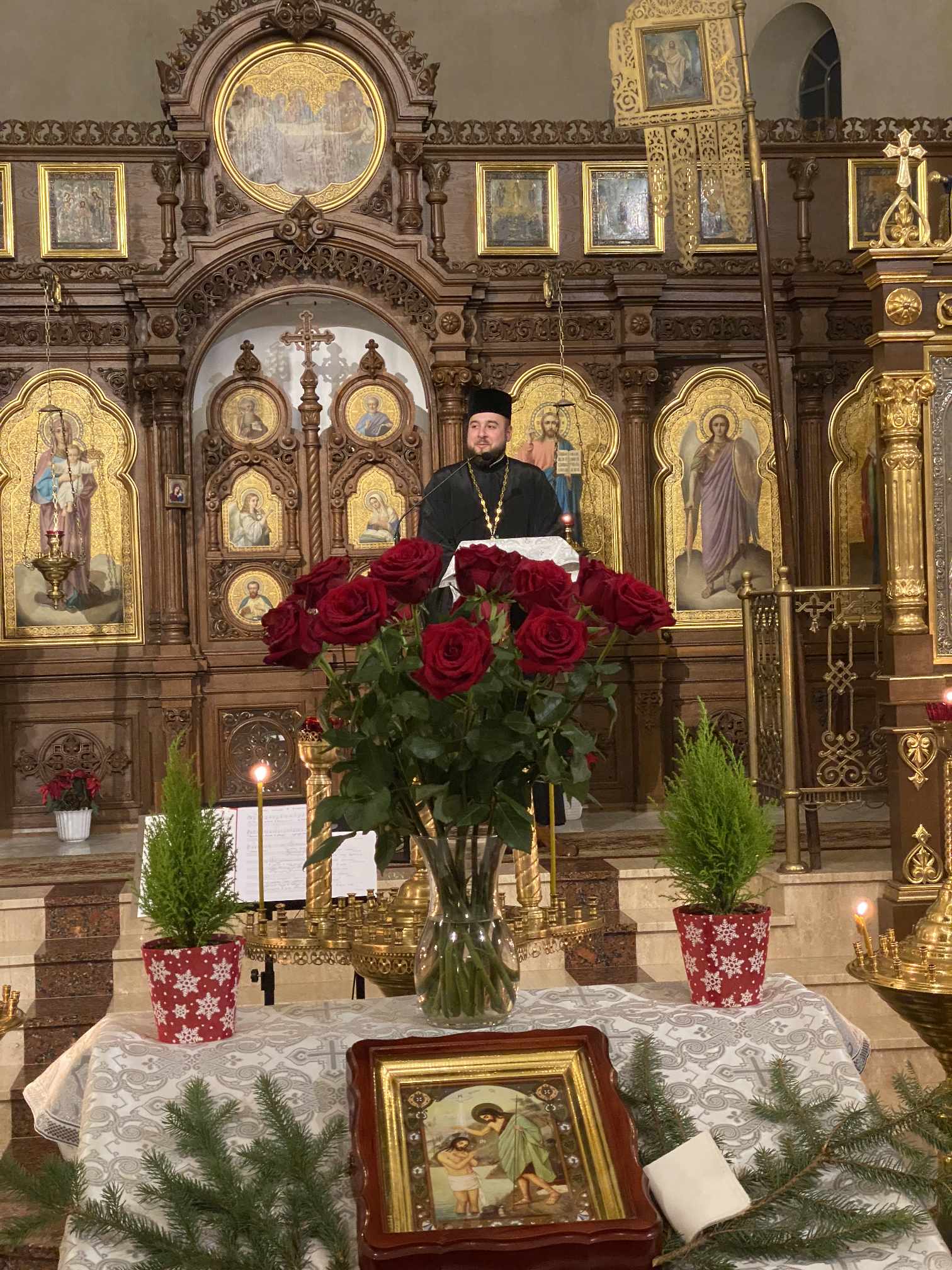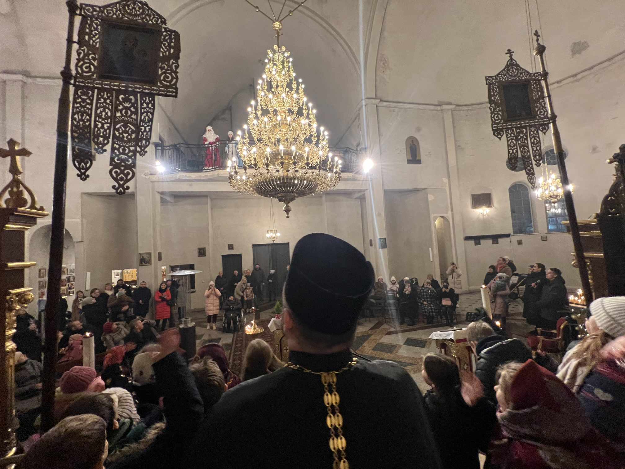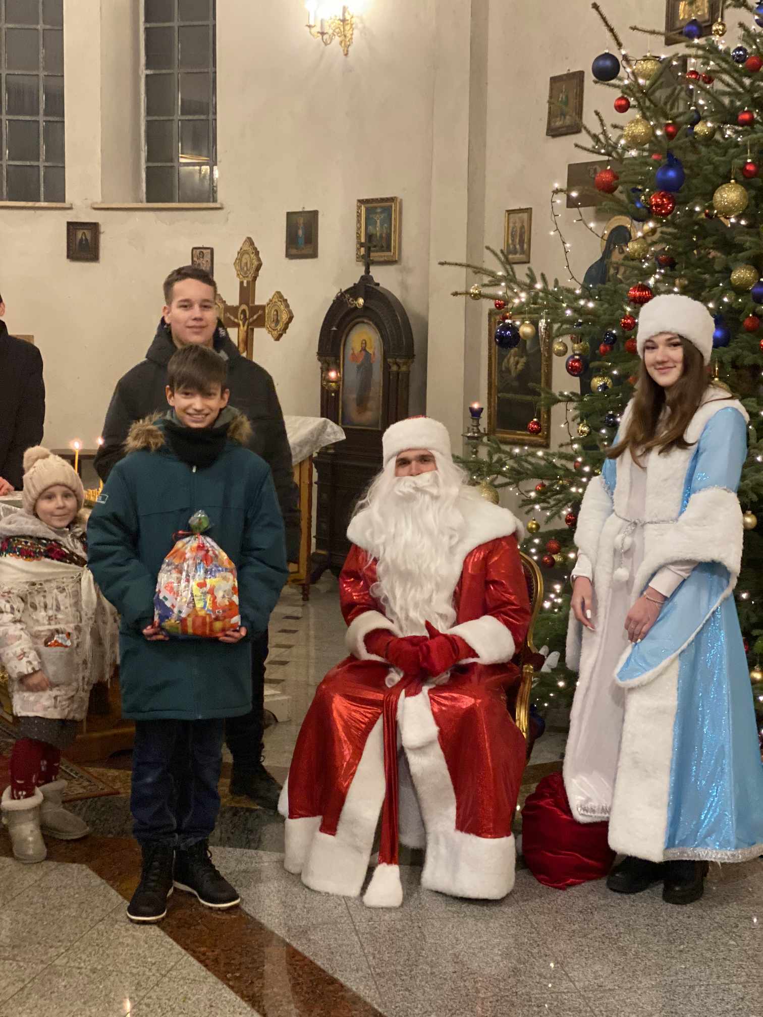 O godzinie 17.00 rodzice wraz z dziećmi zebrali się w świątyni, aby wysłuchać pięknych kolęd i wierszyków w wykonaniu chóru dziecięcego. Po przepięknym wystąpieniu najmłodszych parafian o. Marcin Bielawski, proboszcz parafii, wręczył kwiaty dyrygentce chóru p. Swietłanie i podziękował za profesjonalną opiekę nad kształceniem muzycznym dzieci, gdzie nieustannie rozwijana jest idea wychwalania Boga poprzez śpiew cerkiewny.