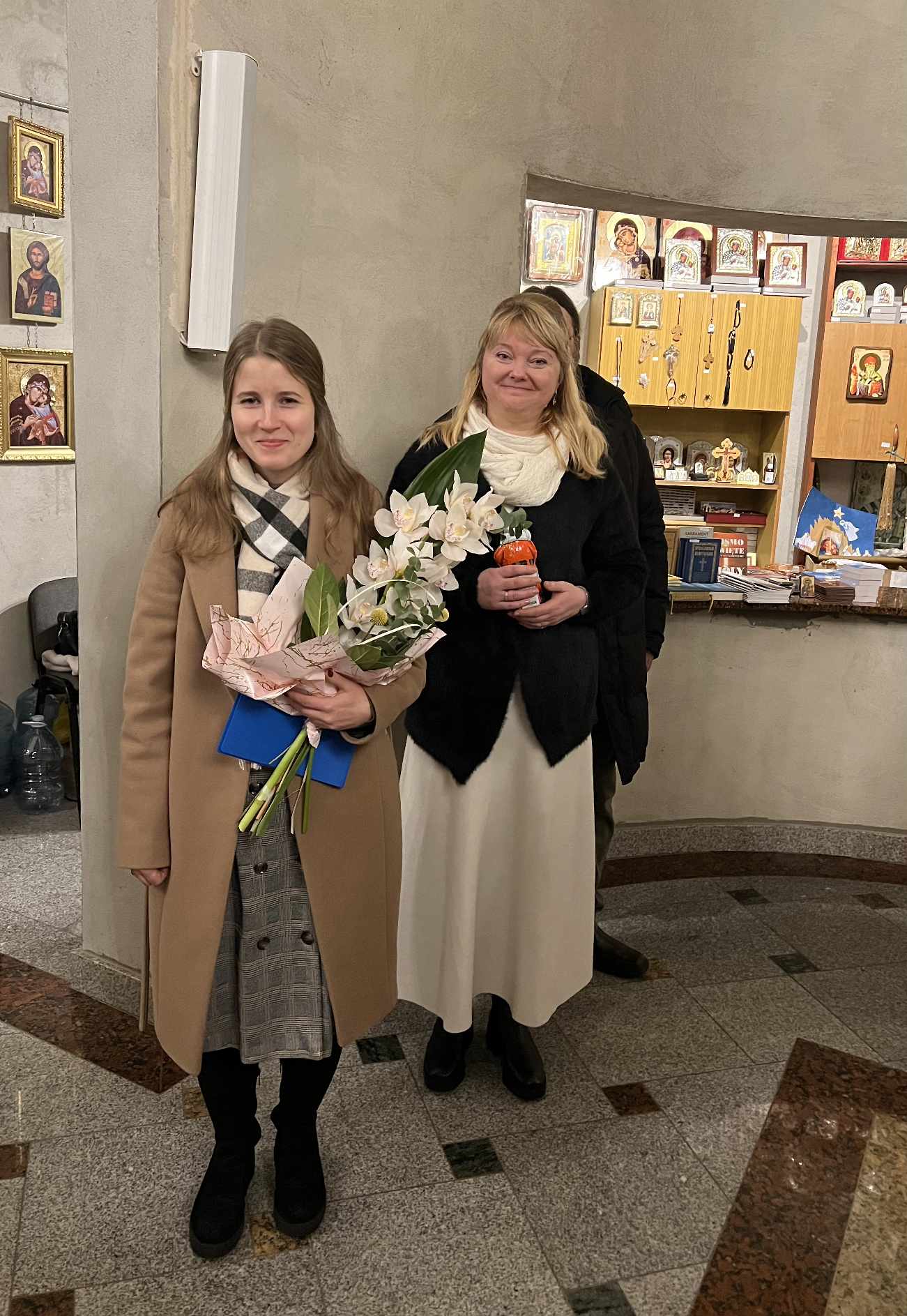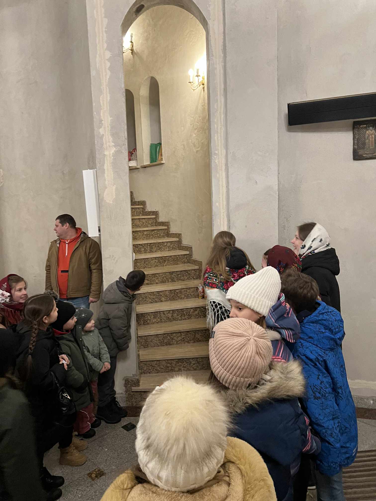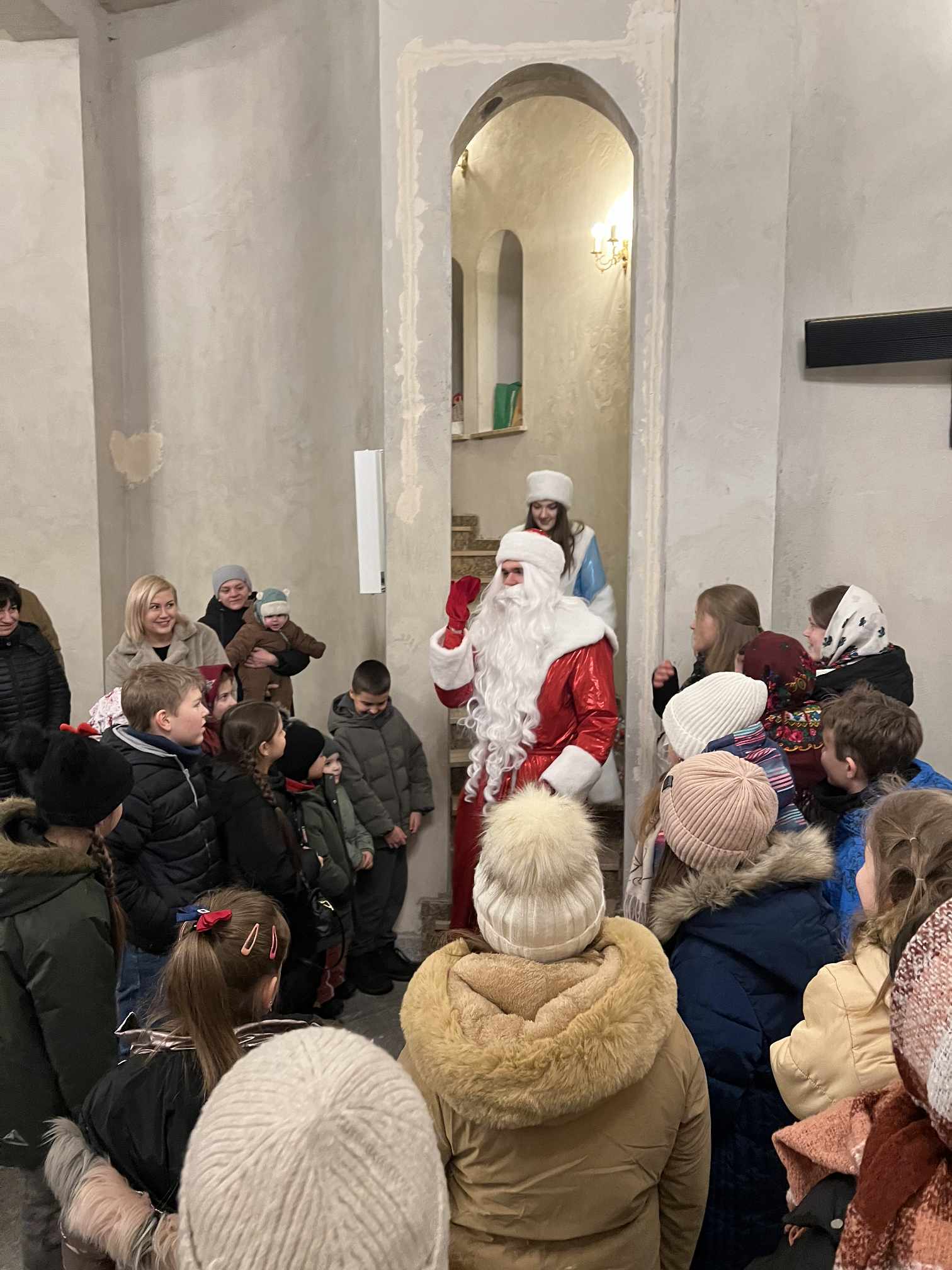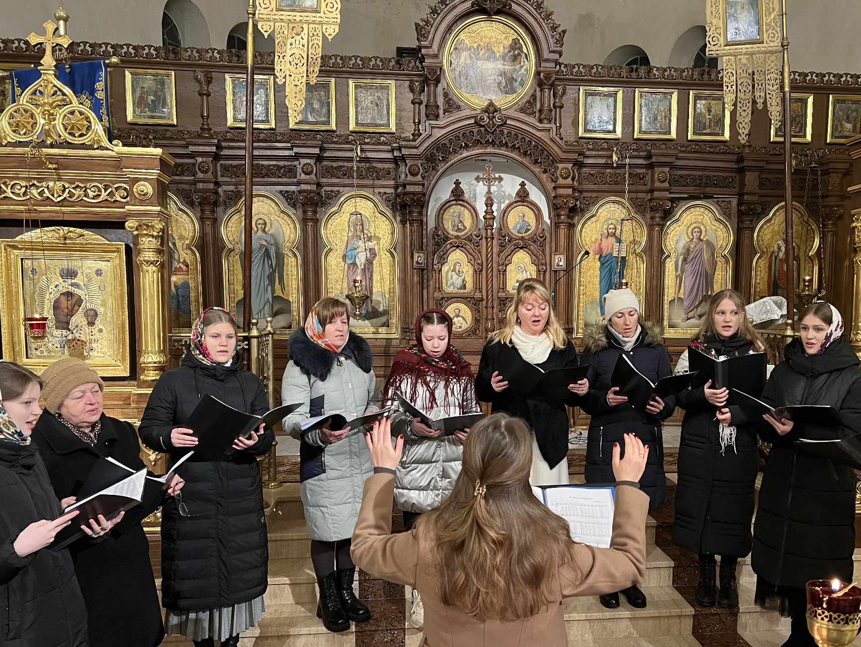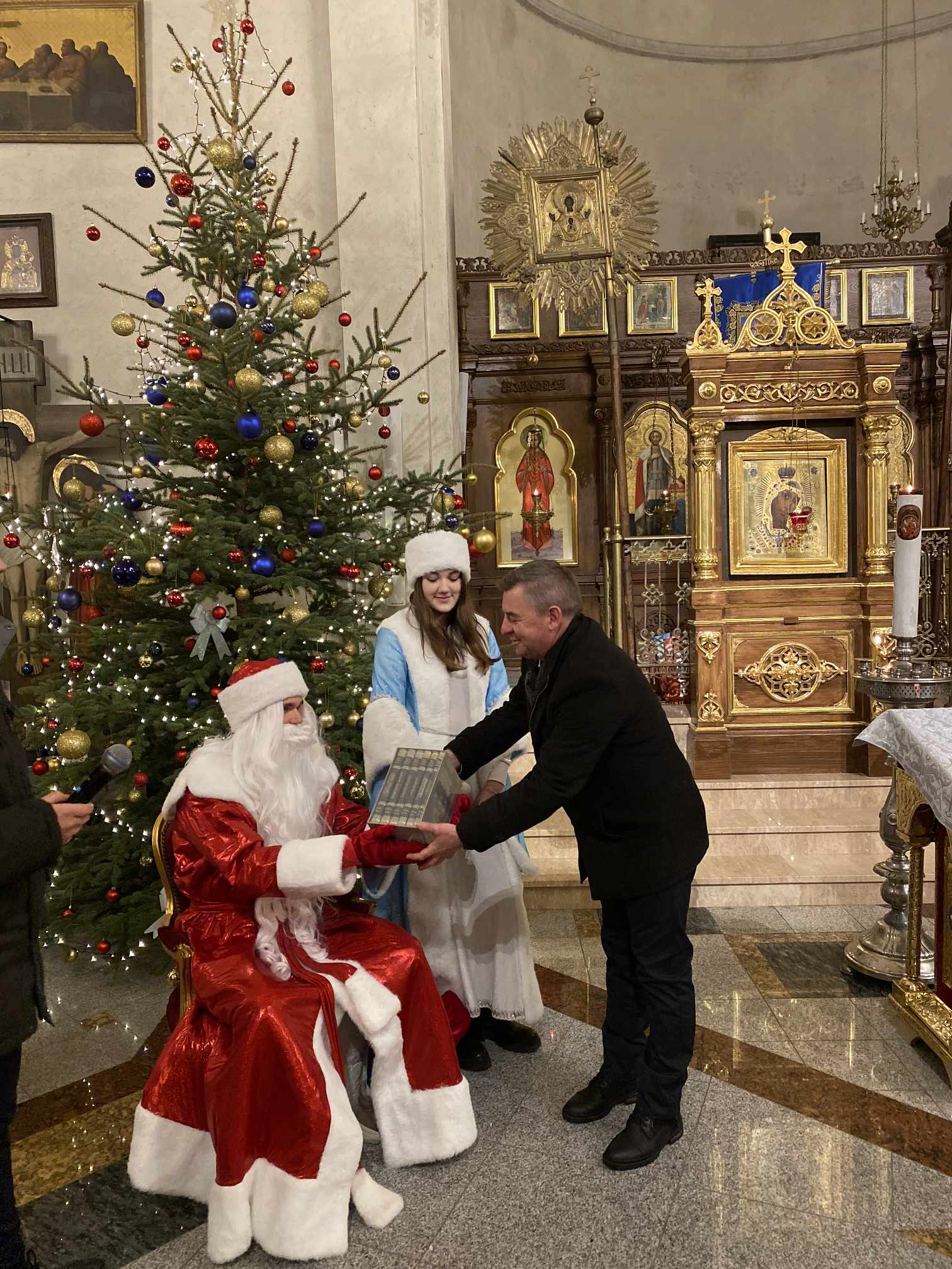 O godzinie 17.00 rodzice wraz z dziećmi zebrali się w świątyni, aby wysłuchać pięknych kolęd i wierszyków w wykonaniu chóru dziecięcego. Po przepięknym wystąpieniu najmłodszych parafian o. Marcin Bielawski, proboszcz parafii, wręczył kwiaty dyrygentce chóru p. Swietłanie i podziękował za profesjonalną opiekę nad kształceniem muzycznym dzieci, gdzie nieustannie rozwijana jest idea wychwalania Boga poprzez śpiew cerkiewny.