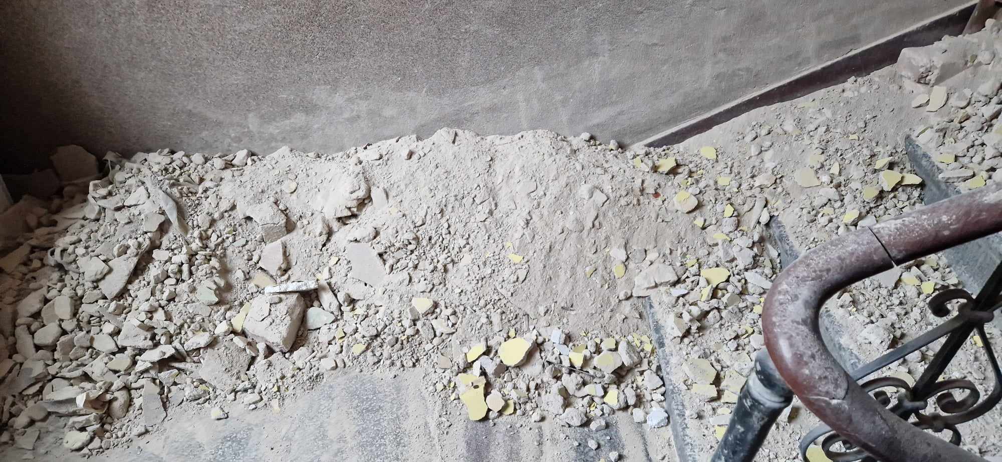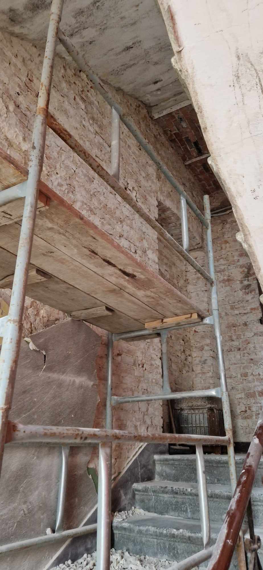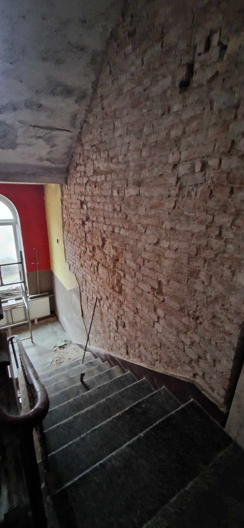 W ostatnich dniach trwają prace polegające na skuciu tynków na klatce schodowej domu parafialnego.