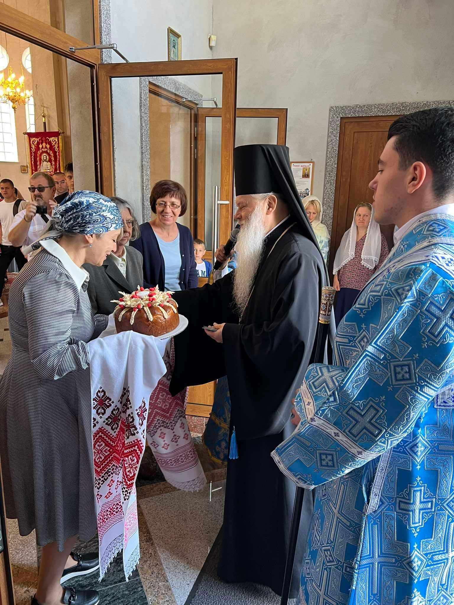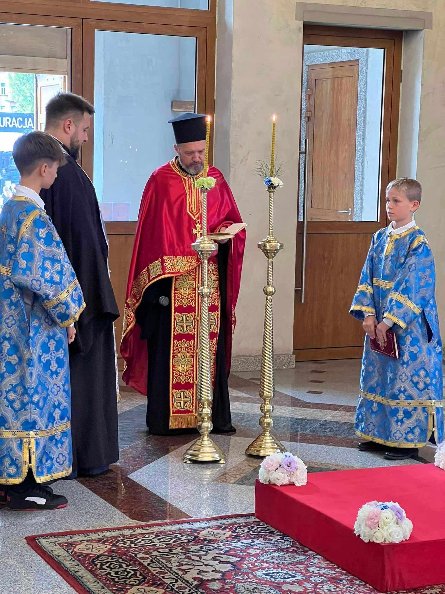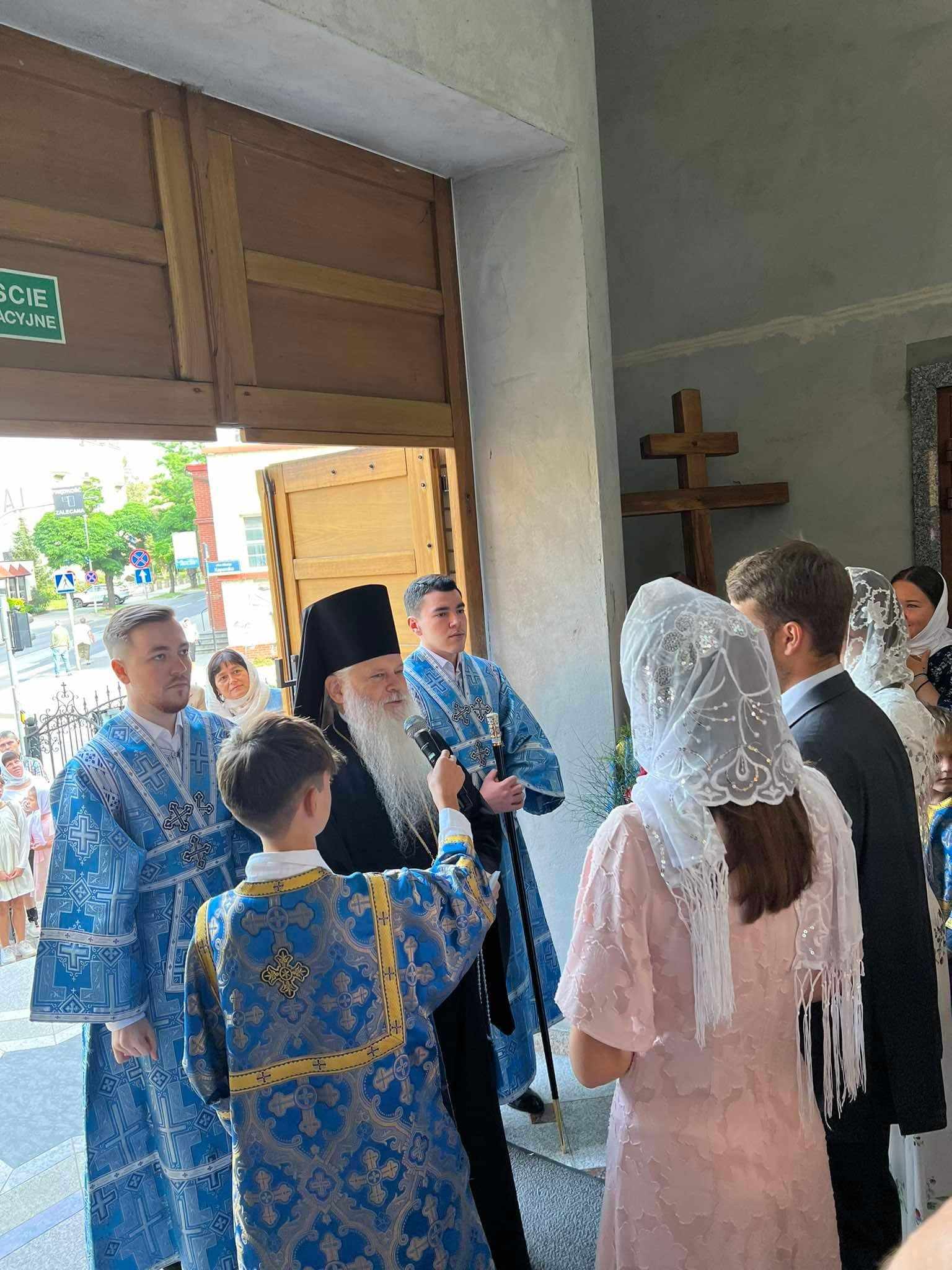 Przed nabożeństwem Jego Ekscelencja Atanazy został przywitany przez przedstawicieli młodzieży, Rady Parafialnej oraz o. Marcina. Kapłan w słowach powitania poprosił Biskupa Atanazego o wznoszenie modlitw w częstochowskiej świątyni prawosławnej za wszystkich wiernych oraz za Ofiarodawców akcji Wspólne Dzieło 2024 na rzecz częstochowskiej parafii.