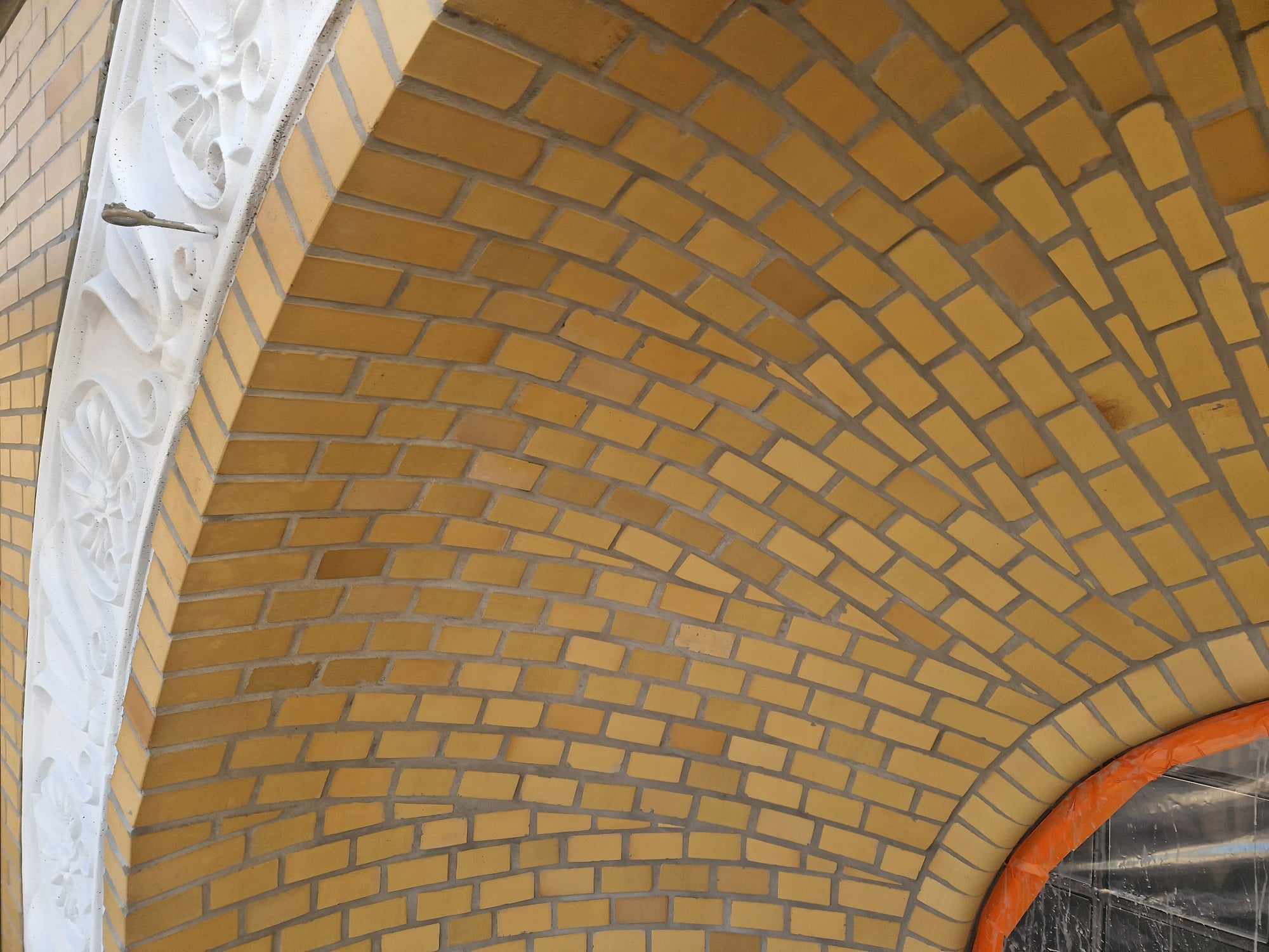 Praktycznie cała ściana została ponownie zafugowana. 8 listopada (w piątek) specjaliści przystąpili do impregnacji ściany, oraz zabezpieczenia białego dekoru farbą elewacyjną.