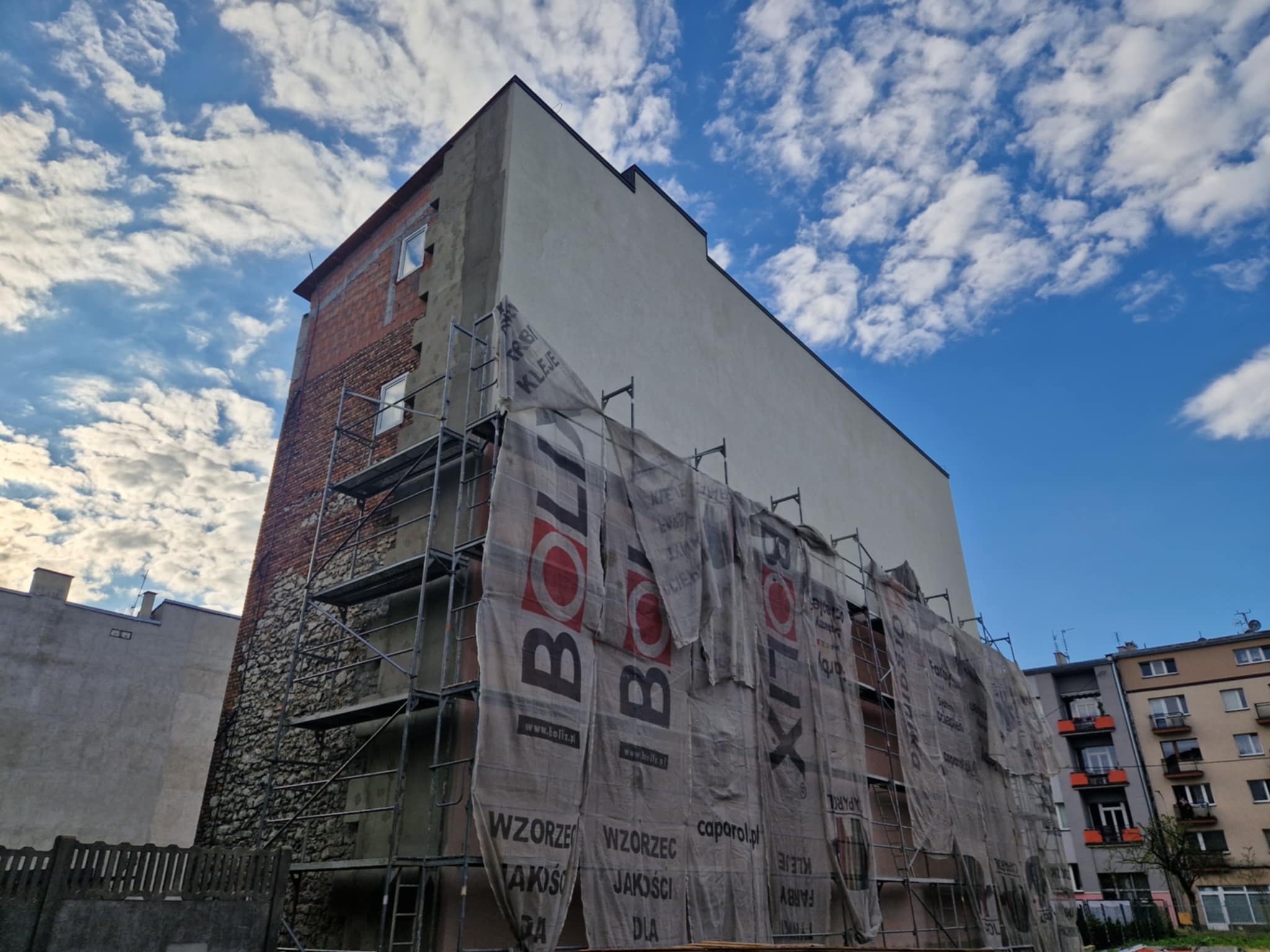 Tylna ściana elewacji gotowa! (Postęp prac remontowych domu parafialnego 2.08.2025)