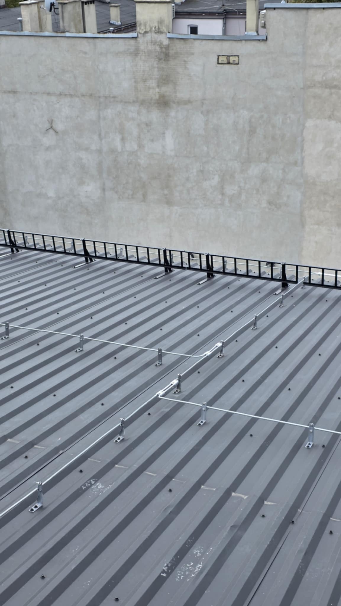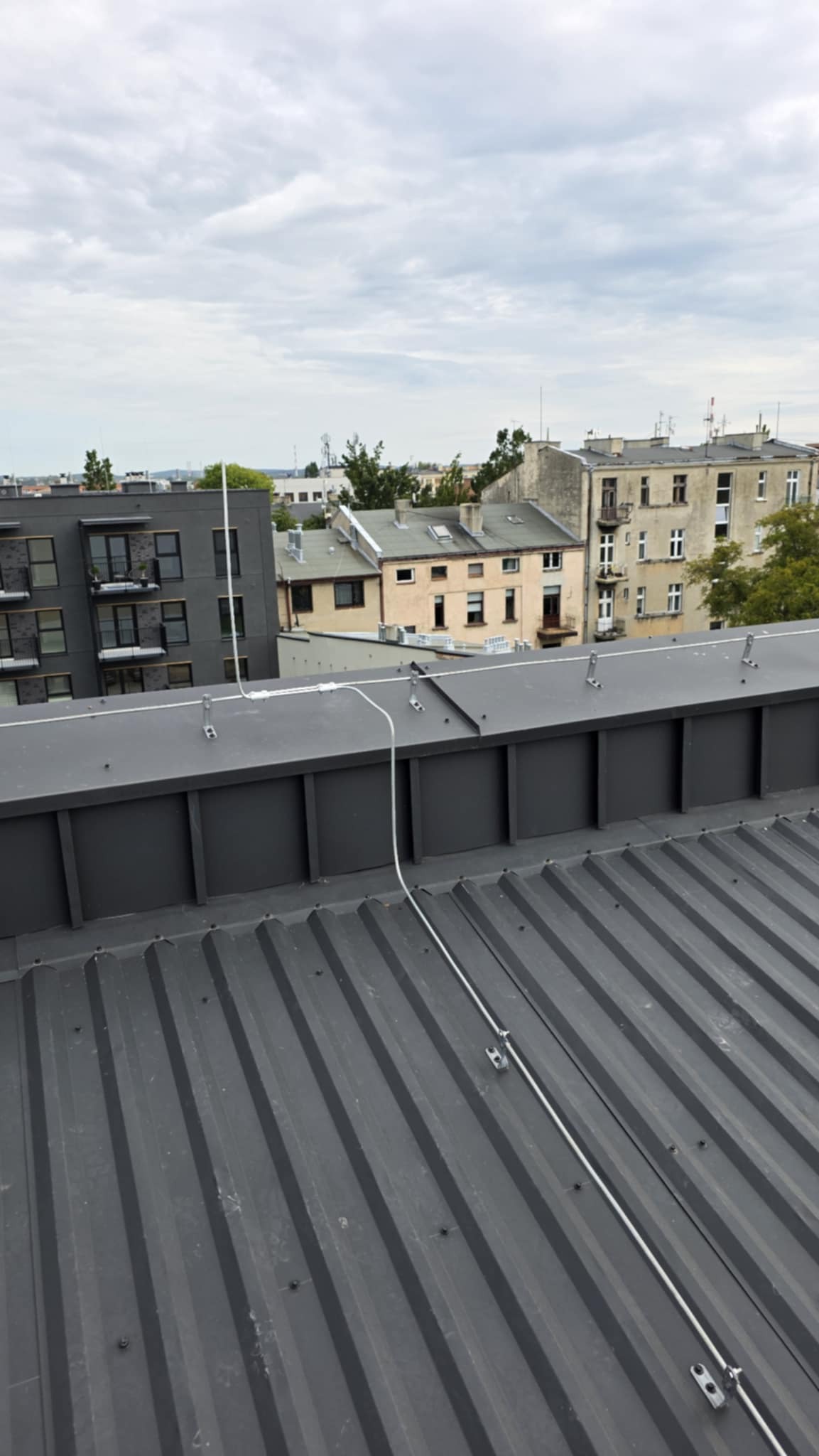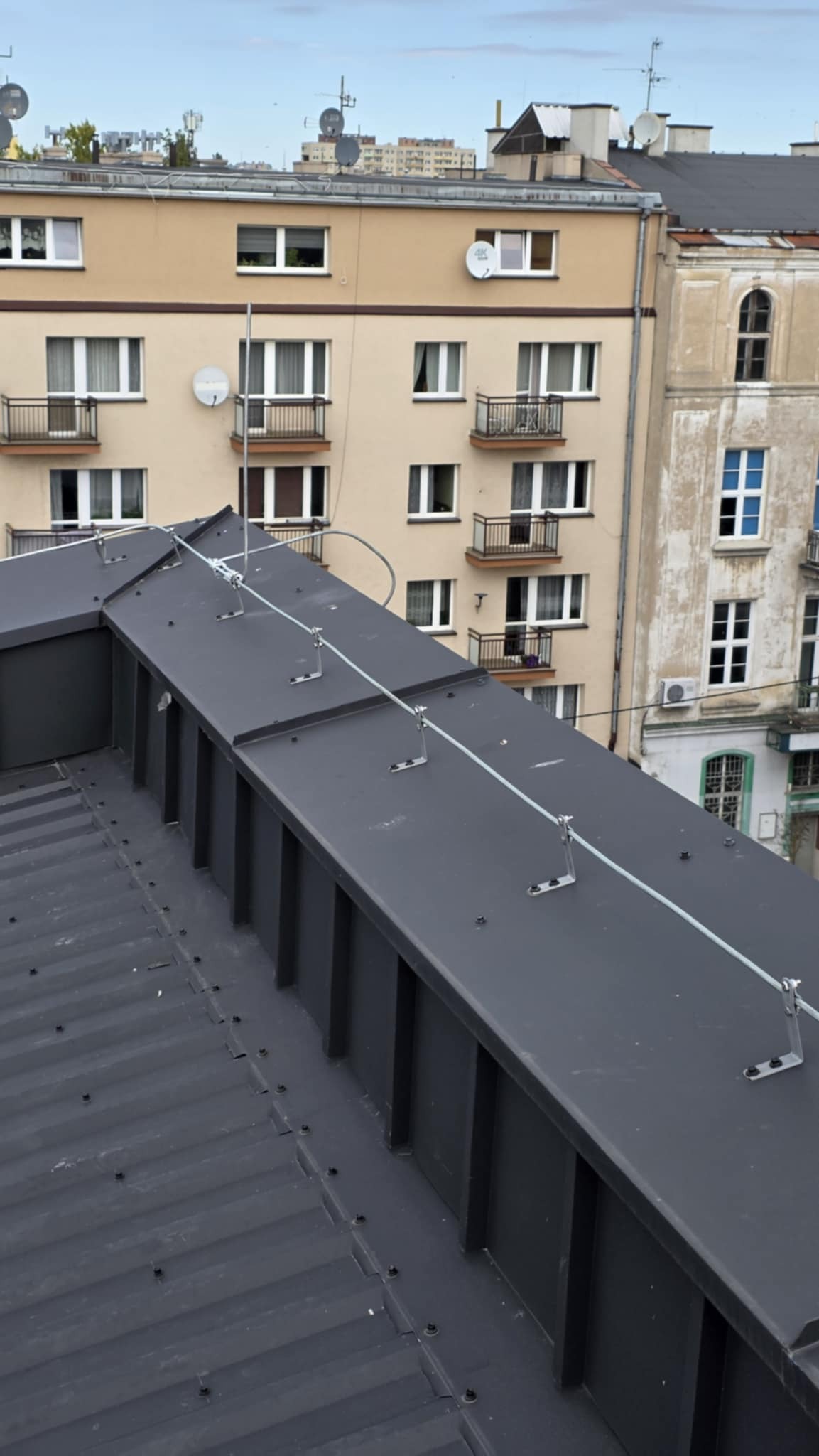 Następnie bednarka została spięta z piorunochronami, po czym na dachu została wykonana instalacja z drutu. Dodatkowo wszystko zostało spójnie spięte z masztami na kominach i skrajnych punktach budynku.