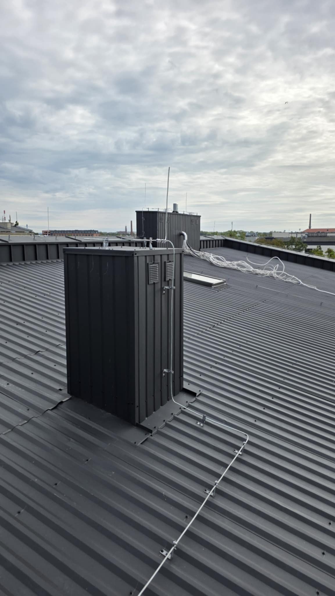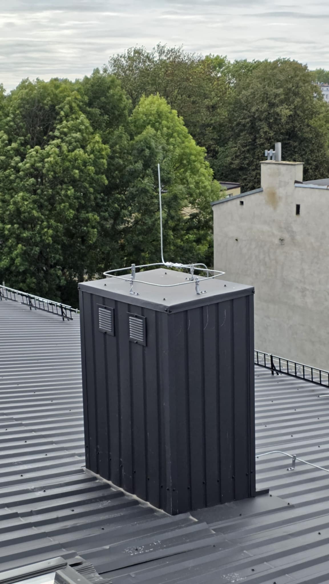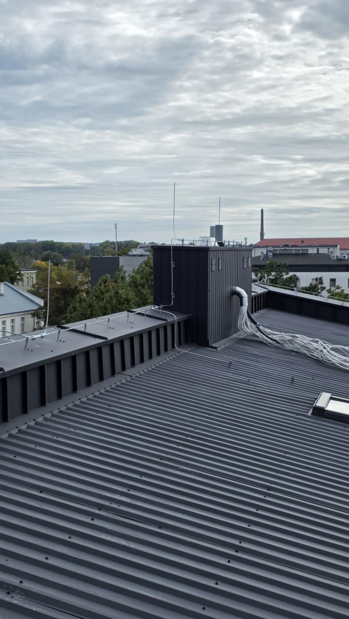 Następnie bednarka została spięta z piorunochronami, po czym na dachu została wykonana instalacja z drutu. Dodatkowo wszystko zostało spójnie spięte z masztami na kominach i skrajnych punktach budynku.