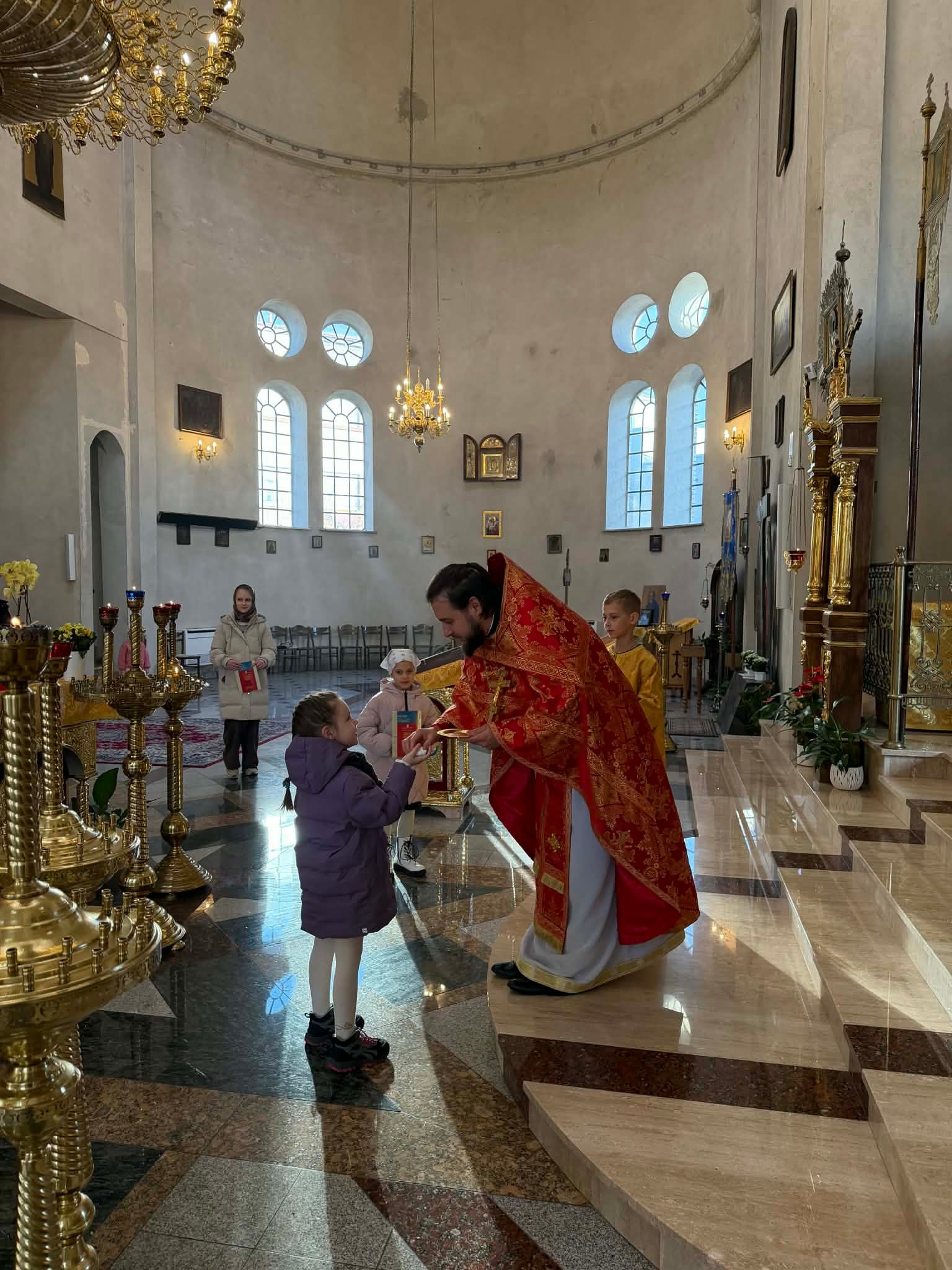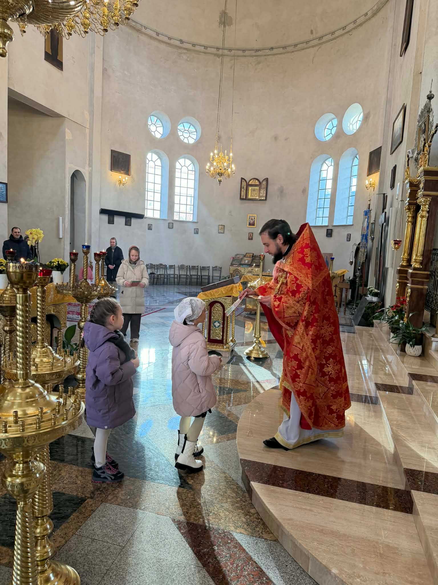 Po nabożeństwie o. Marcin opowiedział o życiu świętej Barbary, a także pozdrowił najmłodsze parafianki, które noszą imię Barbara z okazji ich imienin. Chór wykonał gromkie mnogaja leta, a o. Marcin podarował dziewczynkom prosforkę oraz książeczkę o życiu świętego młodzieńca Gabriela – patrona dzieci i młodzieży.