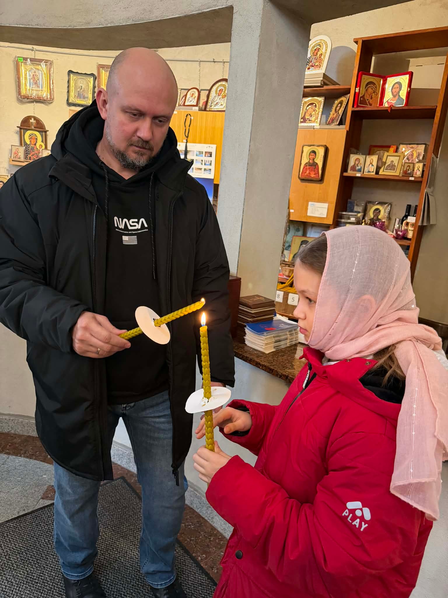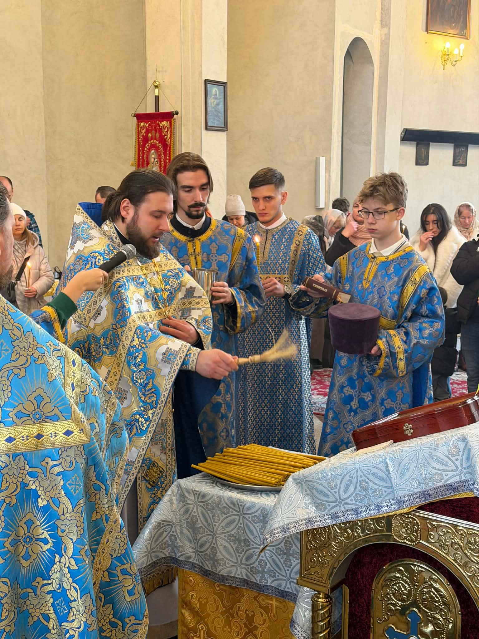 Pod koniec Świętej Liturgii zostały poświęcone świece i przy całowaniu krzyża, ojciec Marcin, pozdrawiając wiernych, każdemu wręczył świeczkę.
