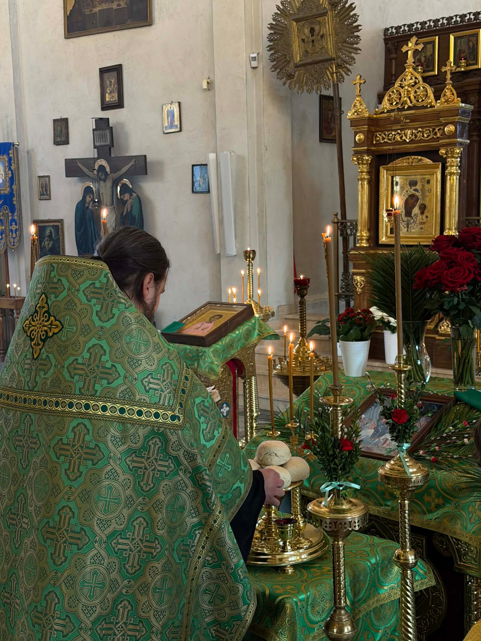 Pierwsze poświęcenie palm odbyło się dzień wcześniej, w sobotę wieczorem, na nabożeństwie całonocnego czuwania, podczas którego zostały poświęcone chleby, pszenica, wino oraz olej.